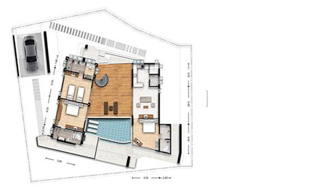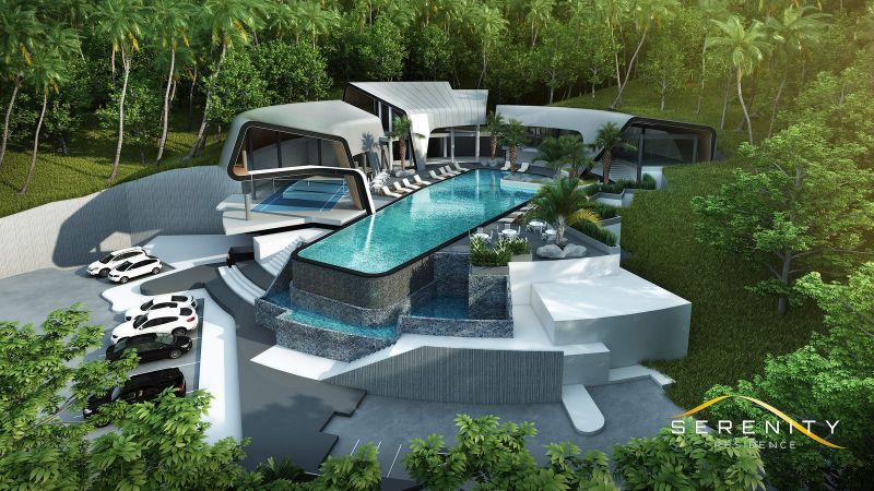Project Villa 3 bedrooms with living, kitchen, terrace, garage and private swimming pool. This villa takes place in magnificent residential complex, designed in harmony with nature and its environment, in the aims to offer its guests a sensation of tranquillity and well-being. Located between Chaweng and Lamai. The unique and contemporary architecture fits perfectly to the site greenery, and offers magnificent panoramic sea views. The accommodation, as for it, combines elegance and modernity. The residence affirms its commitment to offer an airy, serene and privileged living space. The open feeling and direct access to the outside is permanent and offers a real sense of freedom. The residence has a clubhouse that will satisfy the most demanding residents. Real living space around a superb 300m2 pool, with a gym, fitness, squash and badminton, as well as a relaxation centre. Perfect for rental investment.