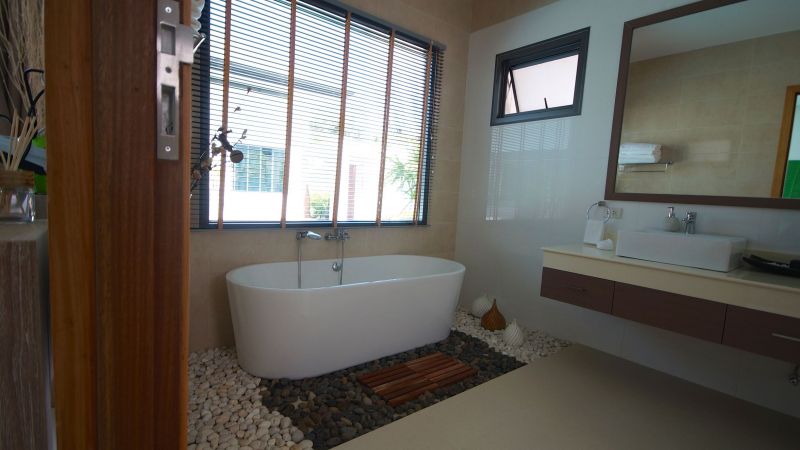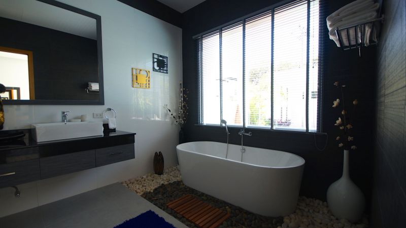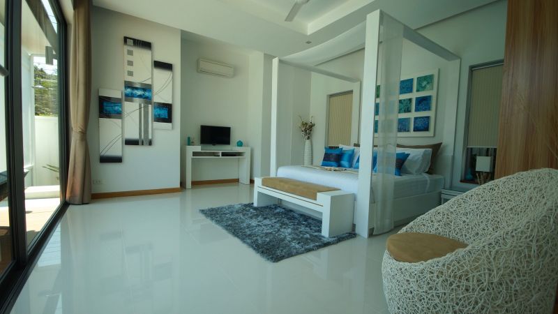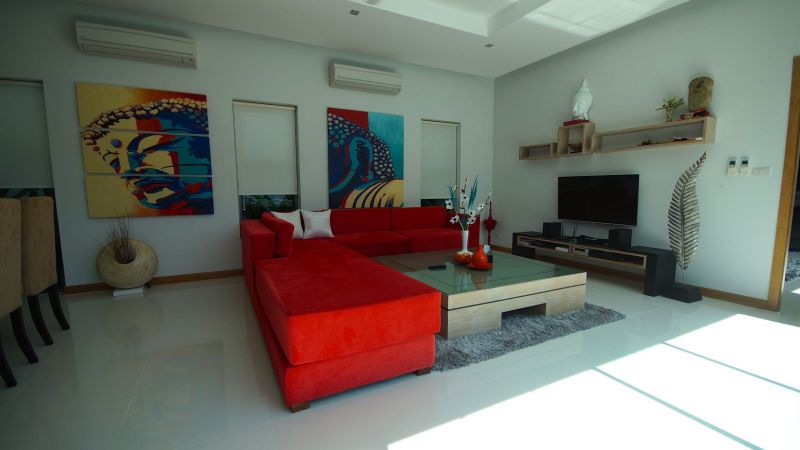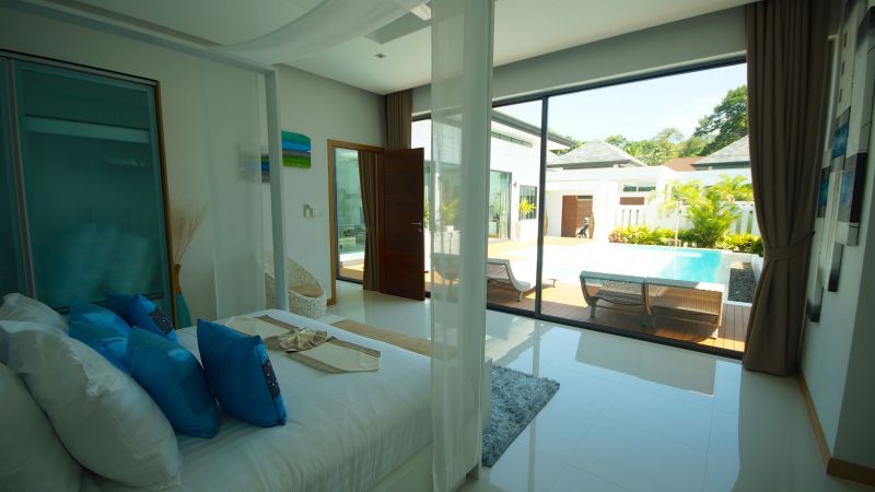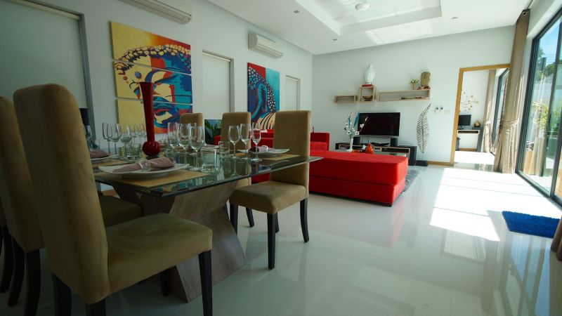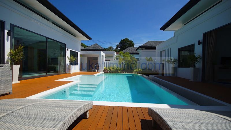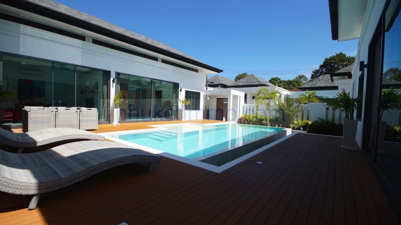 Located on the Saiyuan road, between Rawai Beach and Nai Harn Beach,near restaurants and retail stores, this stand-alone house features 3 bedrooms with ensuite bathrooms, an open space dining – living – kitchen, a garage and a swimming pool with deck.