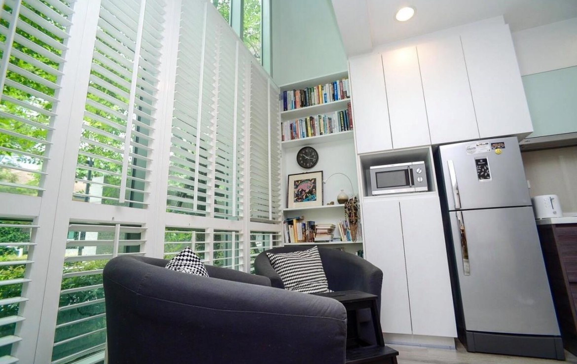 Beautiful 2 Br Duplex for sale Unique unit Centric Sathorn St. Louis is a luxuary development located in the heart of Sathorn area with 10 minutes walk to BTS Chongnonsi or BTS Surasak. The building is well maintained with superb views from the infinity pool and sky view fitness. The 2 bedrooms 2 bathrooms Duplex unit for sale is great unit and offers the only one of its kind in the building. It is located at the seperate building which has fewer condos. Comes with private fixed car parking. The unit is well decorated with spacious master bedroom and beautiful imported white wood shades with a green scenery giving a truly house feeling. Suitable for people who enjoy a garden with quietness and relaxing environment.Size: 95.5sqmPrice: 13,900,000 THB