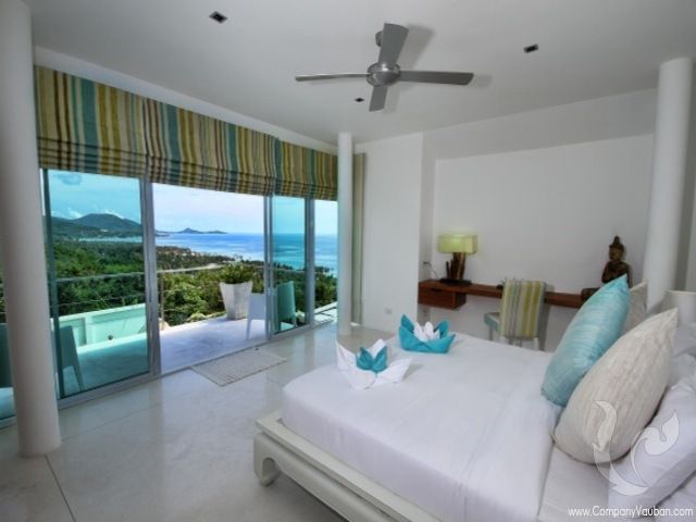 A demi perchée sur les collines, cette belle et récente villa privée contemporain, située au sud de la Côte Est, à 15 kilomètres à partir du point animé de Chaweng. La villa dispose de 5 chambres avec salle de bains, une « chambre principale », une « suite junior » et encore d’autres, avec une piscine, une salle de finess, bénéficiant d’une des meilleures vues sur la mer, vers Koh Samui Lamai Bay et Hua Thanon. Avec ces impressionnants 700 m2 de surface habitable, la ville peut être vue de la mer et jouit d’un magnifique stature. Cette villa dispose de deux entrées, l’une pour les visiteurs, accueillis par une cascade dans un jardin tropical qui mène à l’entrée avec une passerelle sur l’eau, l’autre par le parking, qui peut accueillir plusieurs voitures. Toujours dans un esprit minimaliste, la suite principale est élégamment décoré et offre une vue à 180° sur la piscine, la mer et la plage.