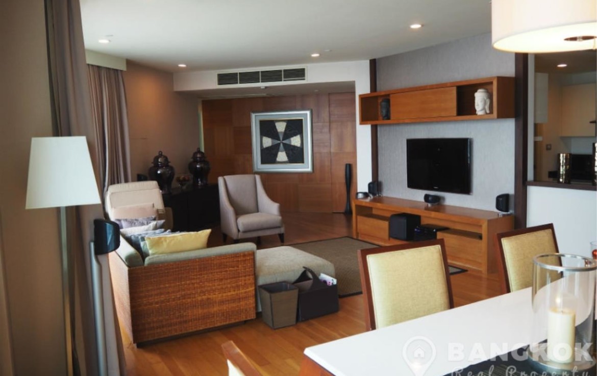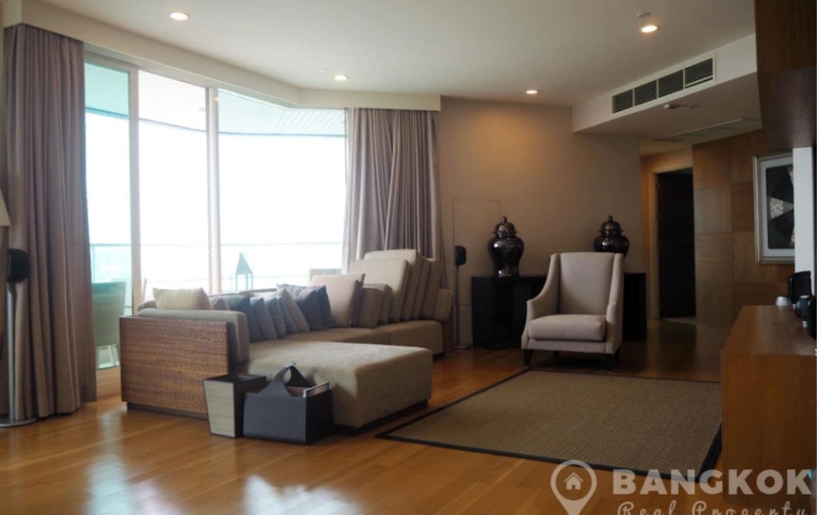 Situated on the mid floor of Watermark Chaophraya this spacious unit has 3 double bedrooms, 4 modern bathrooms and 165 sq.m of living space with a large balcony terrace with Chaophraya River views . The unit has a large airy living-dining room with large picture windows over looking the river, wooden floor throughout, large balcony terrace with table and 4 chairs, LCD TV (in the Living-room and Bedroom 3), feature wood paneled walls, European style, galley style kitchen with extensive fitted units, built in electric ceramic hob & extractor fan, microwave, wine cooler and large fridge freezer. There is a separate utility area with washing machine and separate dryer. The master bedroom suite has a large picture window with river views, walk in wardrobe with great storage space and a beautiful ensuite bathroom with large walk in power shower and his and hers wash hand basins. The 2nd bedroom also has river views, good storage and an ensuite bathroom with power shower. Bedroom 3 (currently used as a TV room) has LCD TV built in shelves, walk in wardrobe and ensuite bathroom with power shower. Off the entrance there is a guest bathroom (powder room).