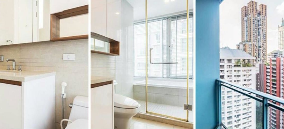 A high end modern European kitchen with branded appliances has been installed to a superior standard. Leading to an open plan living and dining space there is a comfortable sized balcony with immesne views over the Chit Lom district