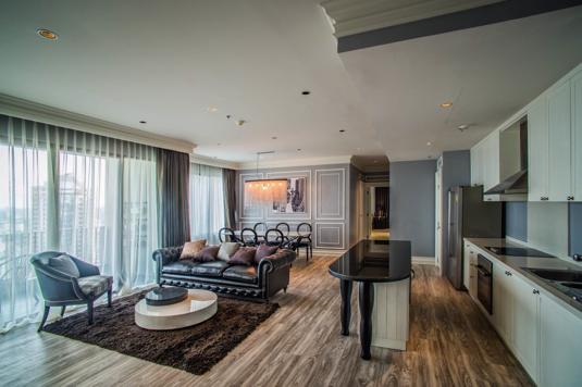 Modern Luxury Penthouse at The Emporio Place Sukhumvit 24. 3 bedroom, 4 bath room. 2 master bedroom with bathtab come with his & her washbasin and walking closet. European Modern Luxury decoration with import leather Sofa and import mable dinning table. Big balcony facing South with Amazing river view. Only 1 unit on this top floor with private lobby and 3 fixed parking.