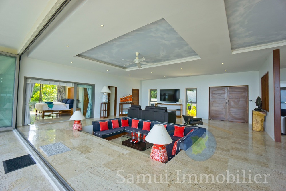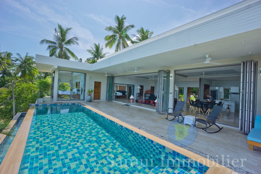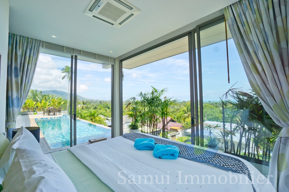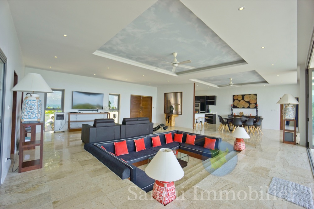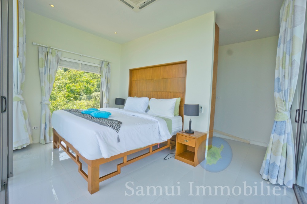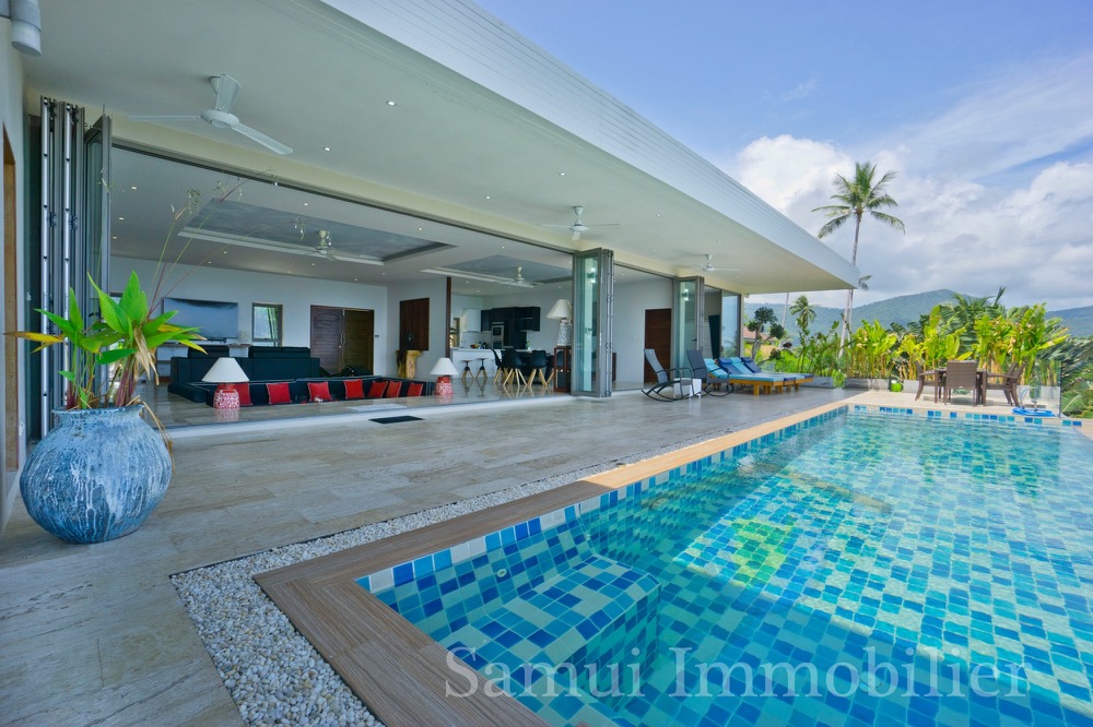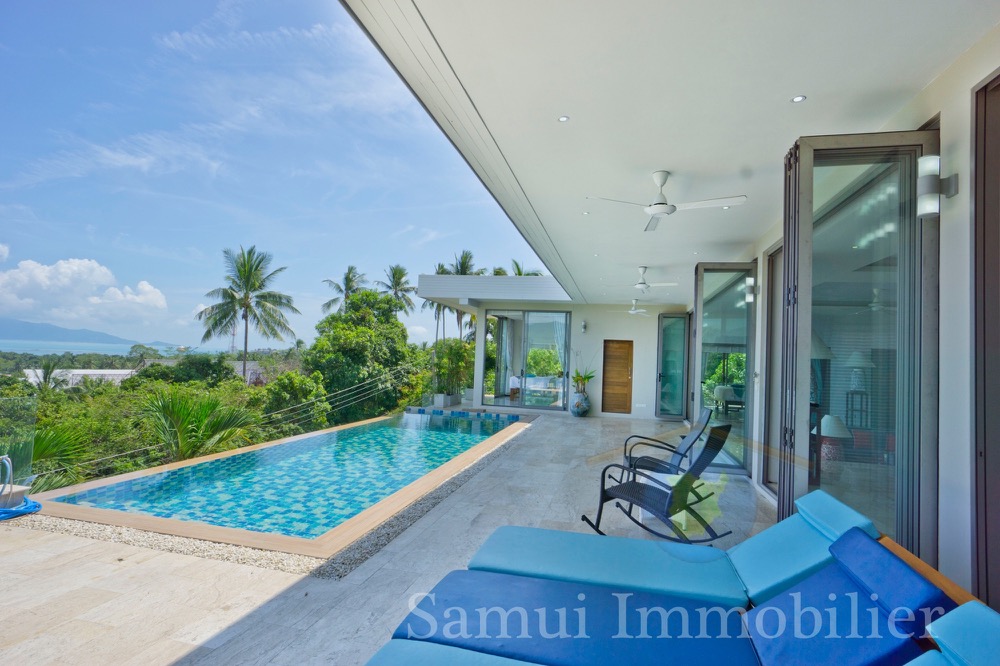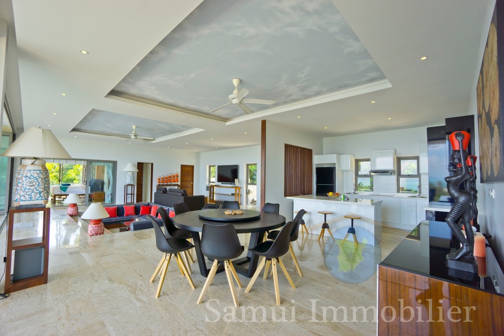 Cette belle villa contemporaine est construite sur un terrain de 1,200 m² et offre une surface totale construite de 300 m² sur 2 niveaux. Vous profiterez d’une très jolie vue panoramique sur la mer avec Koh Phangan en toile de fond…